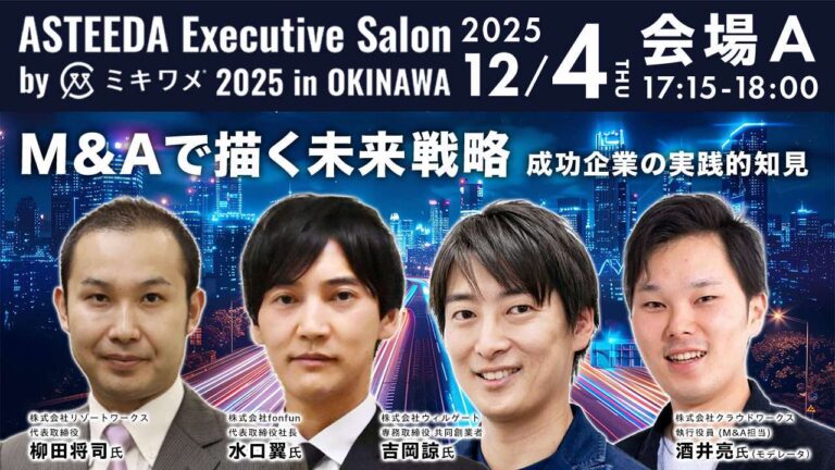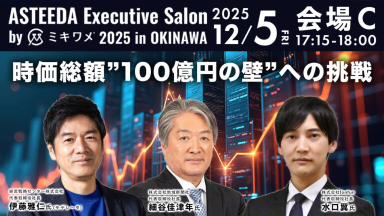 2025年12月4日(木)~6日(土)に開催される「アスティーダエグゼクティブサロン 2025 in 沖縄」に当社代表取締役水口が登壇することをお知らせいたします。